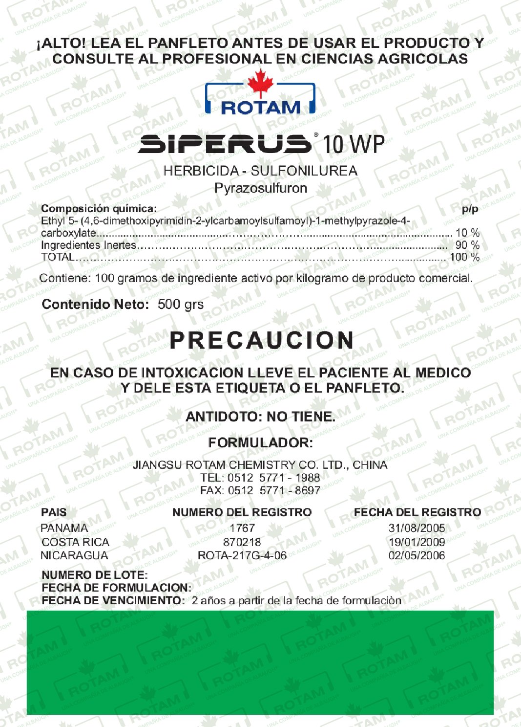 SIPERUS 10 WP es un herbicida de la familia de las sulfonilureas, altamente eficaz a bajas dosis en el control de malezas ciperáceas y hojas anchas en arroz.
