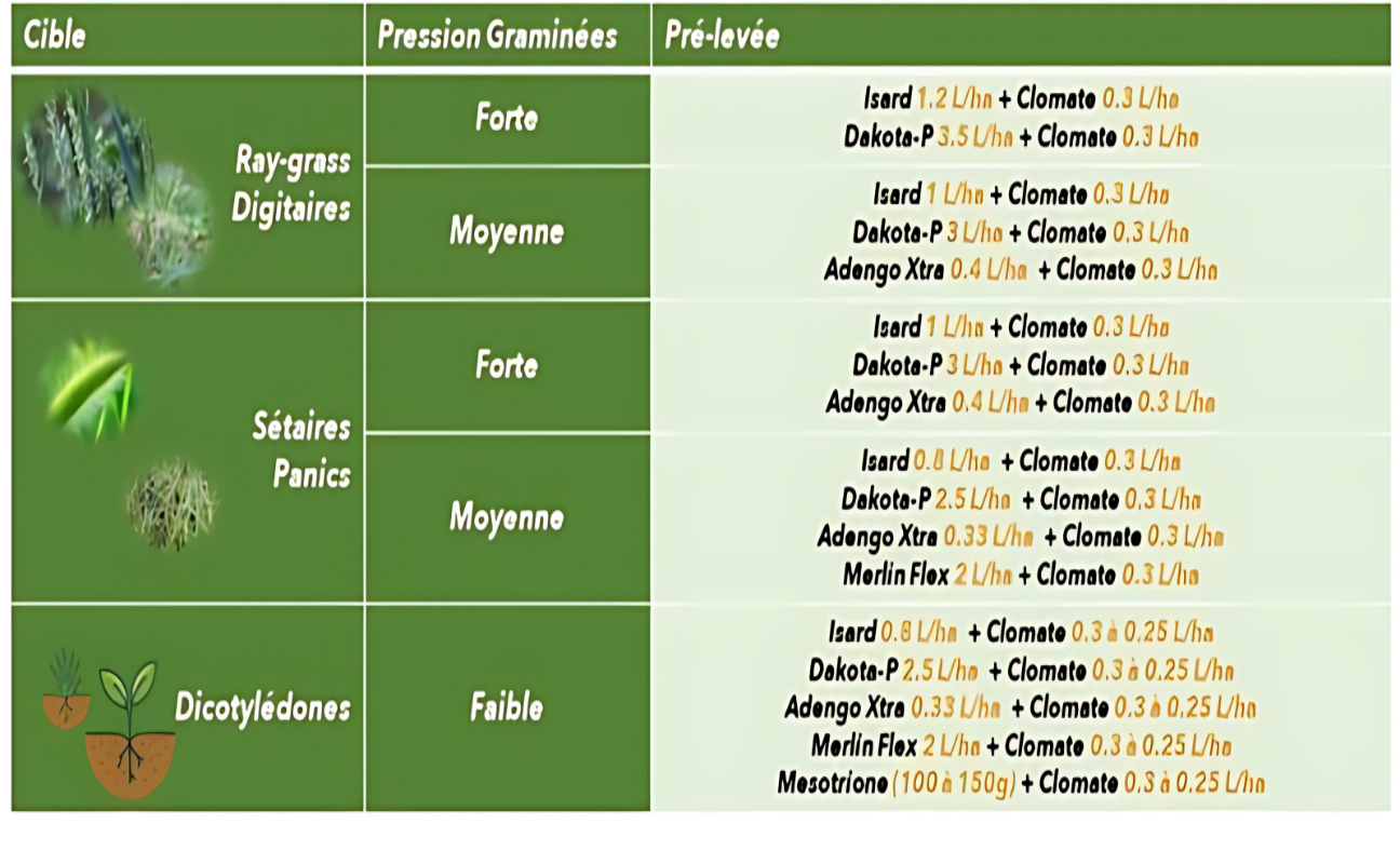 Retrouver ci-dessous nos recommandations d’emploi selon les problématiques de flores attendues dans vos parcelles.