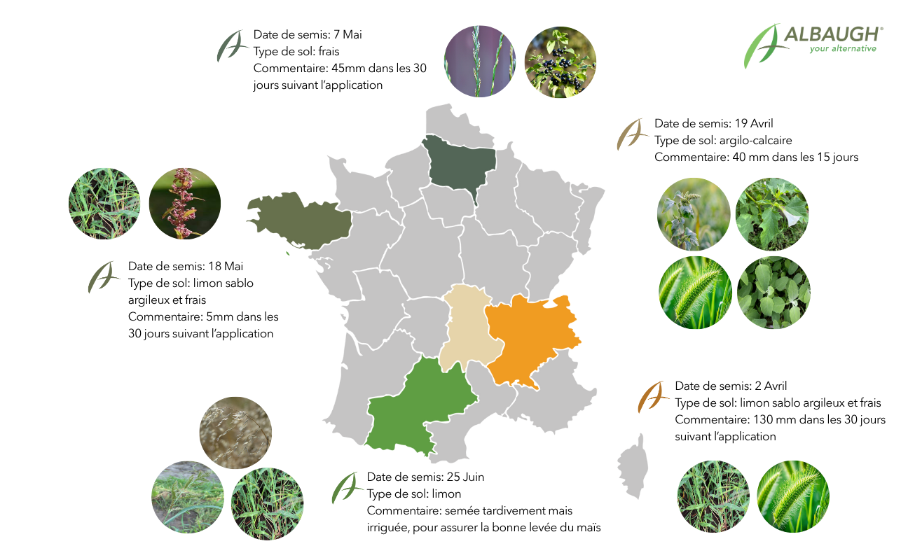 Suite à l’arrêt du S-Moc, il était nécessaire de repenser les programmes de désherbage maïs afin de préserver des efficacités suffisantes sur graminées. En effet, les solutions restantes s’avèrent pour la plupart insuffisantes seules sur graminées, et souvent avec des efficacités satisfaisantes 30 jours après traitement mais qui s’effritent avec le temps (source Choisir & Décider Maïs Arvalis), nécessitant donc de les associer et les intégrer dans des programmes de désherbage afin d’obtenir des efficacités finales satisfaisantes.