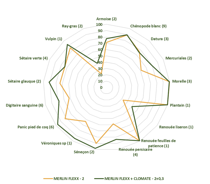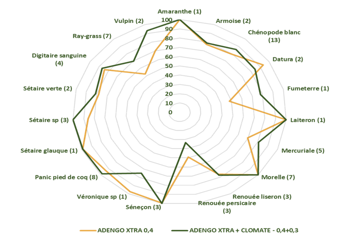 - Associer 0,3L/ha de CLOMATE à ADENGO XTRA 0,4L/ha